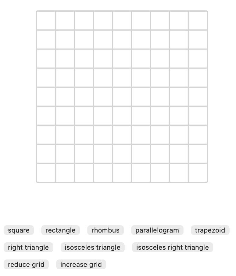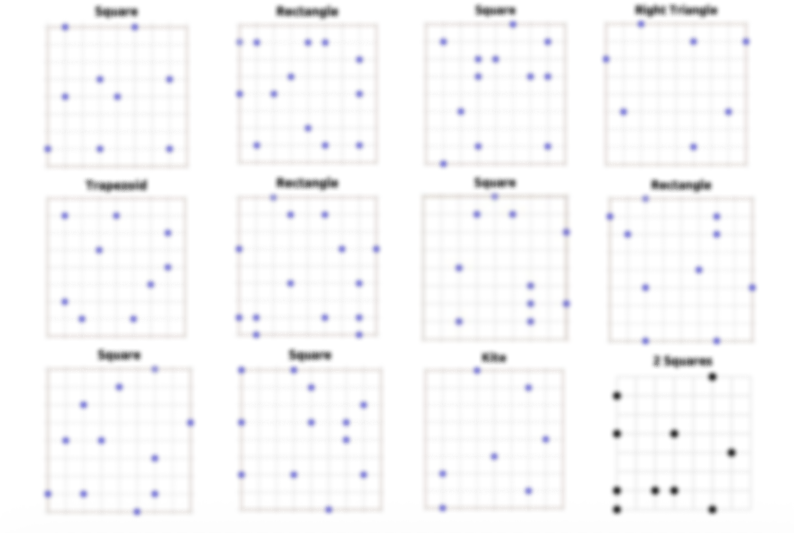 Each Zukei puzzle provides you with a grid featuring several dots and the name of a shape. The task is to connect some of the provided dots to form the specified shape. The dots must lie on the shape’s vertices.